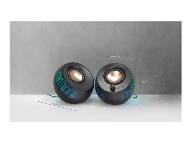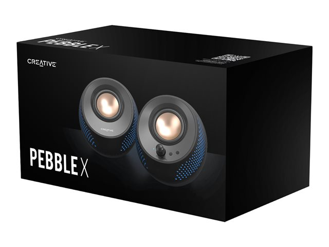 - Informasjon The Creative Pebble X speakers are a testament to Creative Technology's commitment to audio excellence and innovative design. These speakers are designed specifically for PC users, offering a blend of aesthetic appeal with RGB lighting and superior sound quality. With an integrated amplifier providing 15 W of continuous power and up to 30 W at peak, the Pebble X ensures your music, games, and videos sound better than ever. Connectivity is a breeze, thanks to Bluetooth 5.3 and USB-C, along with various input options for headphones and microphones. The inclusion of BassFlex, Dialog+, and Sound Blaster Acoustic Engine technologies further enhances the audio experience, delivering clear, rich, and immersive sound across a wide frequency range. Whether for work or leisure, the Creative Pebble X speakers are designed to impress.