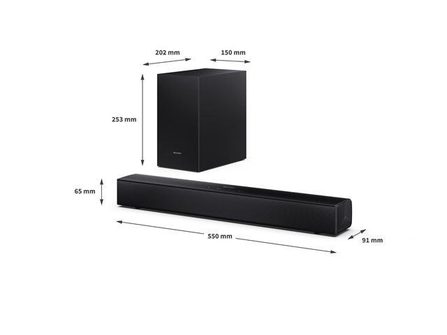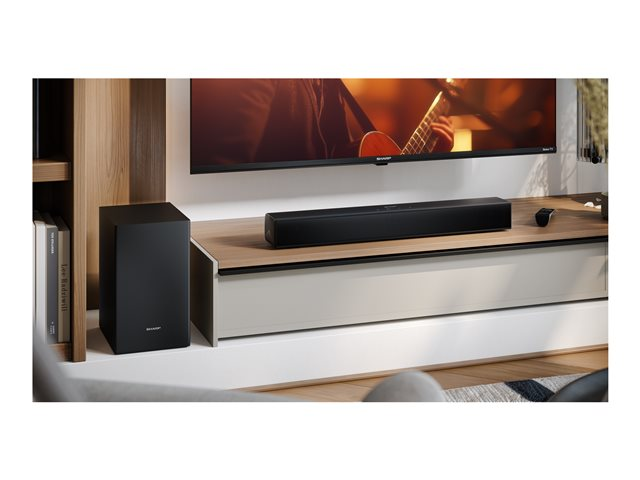 - 2.1-channel sound bar system for immersive audio experience