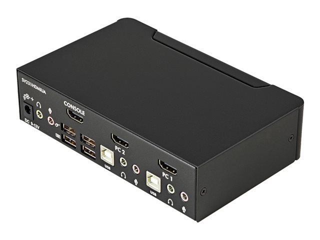 Share a keyboard, mouse and HDMI monitor between 2 multimedia computers. The SV231HDMIUA 2-port USB HDMI KVM Switch lets you control two USB-enabled multimedia computers or devices with HDMI video interfaces, using a single peripheral set/console (USB keyboard, mouse, monitor, speakers and microphone).