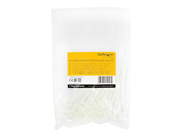 Startech 10cm(4") Cable Ties with Mounting Hole, 2mm(1/16") wide, 24mm(7/8") Bundle Dia. 8kg(18lb) Tensile Strength, Nylon 66 Self Locking Ties with Screw Hole, UL Listed, 100 Pack