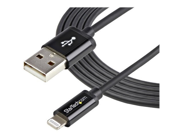 StarTech.com 2m (6ft) Long Black Apple® 8-pin Lightning Connector to USB Cable for iPhone / iPod / iPad