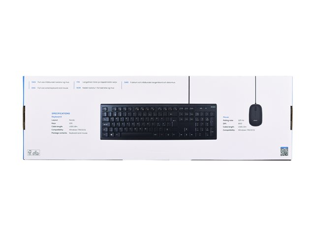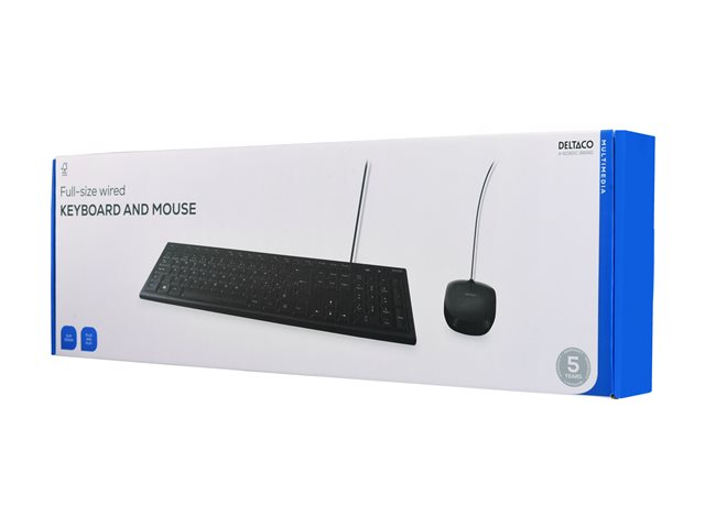 Produktbeskrivelse DELTACO TB-700 - tastatur- og mussett - Nordisk Inn-enhet Enhetstype Tastatur- og mussett Grensesnitt USB Overføringsteknologi Kablet Plassering og layout Nordisk Pekeenhet Mus - Nedlastbare filer