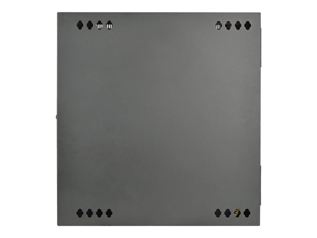 The cabinet swings away from the wall on a sturdy hinge, allowing easy back-door access to equipment and cabling during installation and maintenance. The doors and side panels lock securely to help prevent damage, tampering or theft. The front, top, bottom and removable side panels are vented, which allows air to flow freely and keep equipment cool. The reversible doors can open left or right by rotating the cabinet 180° before mounting. Convenient top and bottom ports allow easy cable routing.