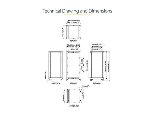 Designed with ease of use in mind, this 25U rack offers easy-to-read markings for both rack units(U)and depth, with a wide range of mounting depth adjustments (22-40in) that make it easy to adapt the rack to fit your equipment.