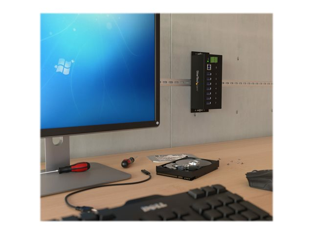 Metal Industrial USB-A Hub with ESD Protection & 350W Surge Protection - Din Rail, Wall or Desk Mountable - TAA Compliant USB Expander Hub (ST7300USBME) - hub - 7 porter