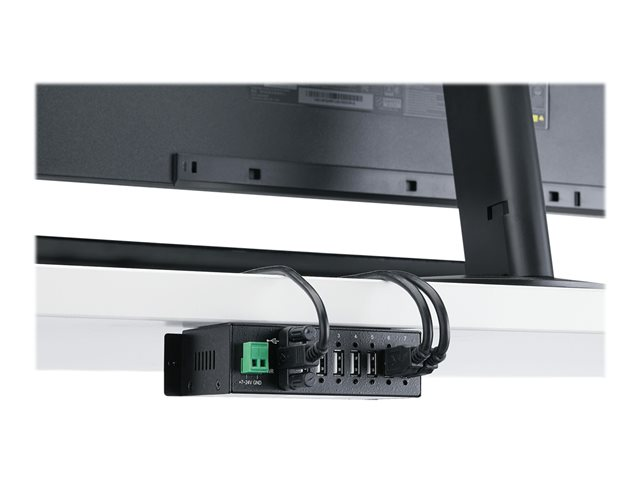 With versatile installation options, you can install the hub where it's best suited for your environment. With built-in mounting brackets and included DIN mount rails, you can securely mount the USB 2.0 hub to most surfaces such as a wall, under a desk or rack.