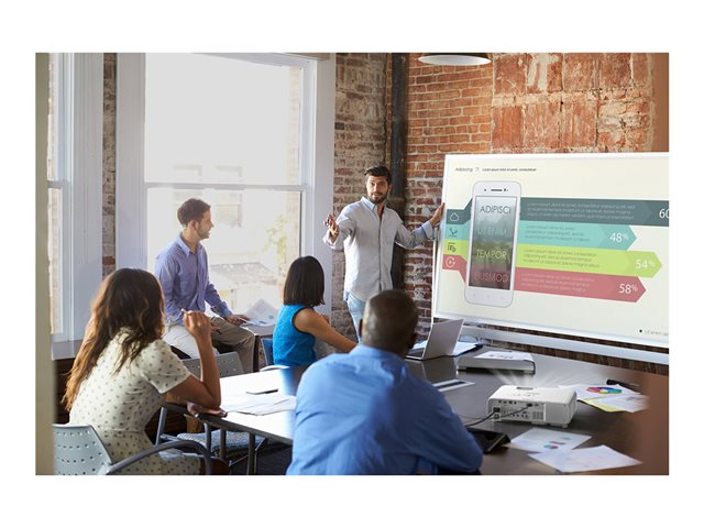 Kombinert med avanserte funksjoner er EB-L260F en trådløs Full HD-laserprojektor på inngangsnivå som er den ideelle løsningen for ethvert arbeidsmiljø. Den har en lysstyrke på 4 600 lumen, en rekke trådløse og kablede tilkoblingsmuligheter og en skalerbar skjermstørrelse på opptil 310 tommer.