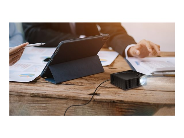 - Informasjon The Optoma ML750i is a portable DLP projector designed to enhance your viewing experience, ideal for both presentations and multimedia enjoyment. With a brightness of 700 lumens and a 1280 x 800 resolution, it ensures clear and vibrant images for a cinema setup or a business environment. The projector supports a variety of video modes, including 1080/60i and 720/60p, making it versatile for different content types. Equipped with features such as 360° projection and auto keystone, it adapts to your space seamlessly, offering ease of use and flexibility. Designed to promote convenience, the Optoma ML750i offers a lightweight and portable solution for those on the go. Its robust built-in 2-watt mono speaker and integrated audio output capabilities enhance the overall multimedia experience. The long lamp life of 20,000 hours adds longevity to the device, ensuring extended use without frequent maintenance. The projector includes multiple connectivity options, including HDMI and USB ports, allowing easy integration with various media devices.