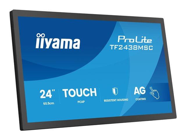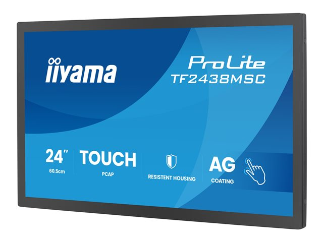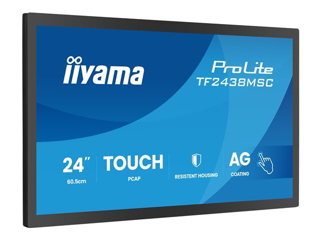 - Informasjon The iiyama ProLite TF2438MSC-B2 is a versatile 24-inch LED-backlit LCD monitor designed for interactive applications. With its 10-point multi-touch technology, users can easily navigate and interact with content in a dynamic way. Featuring a native resolution of 1920 x 1080 pixels, the display offers vibrant visuals with a brightness of 600 cd/m2 and a contrast ratio of 1300:1, ensuring clarity in various lighting conditions.