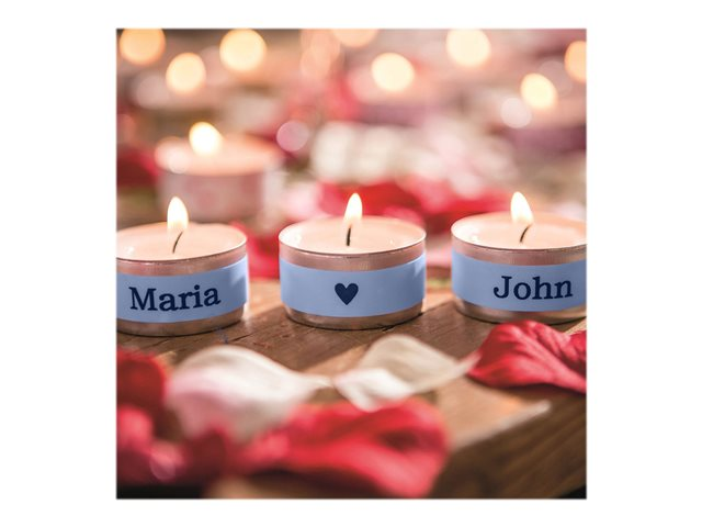 - Informasjon Sett et personlig preg på gaver til familie og venner, eller på dine personlige artikler med denne merketapen som har sort tekst på pastellblå bunn.