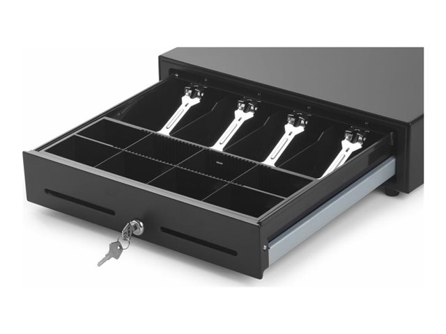 - Bill tray equipped with four metal bill clips for secure storage