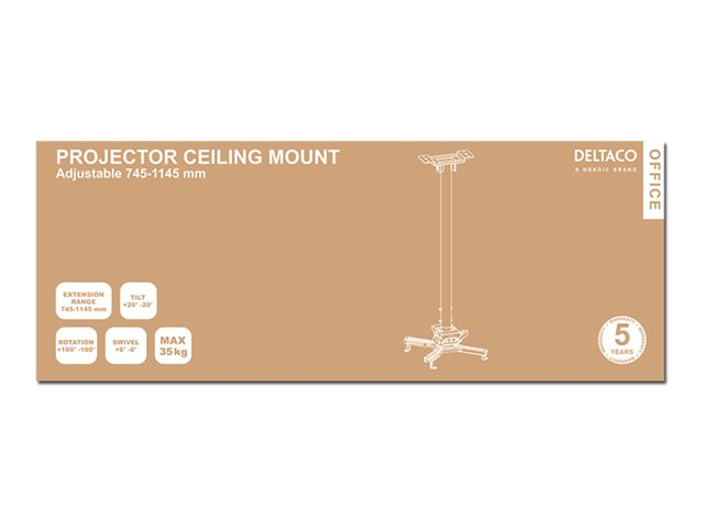 - Justerbar høyde: 745 Monter en projektor på flate eller skråtak. Med ARM-0412 kan du enkelt installere en projektor i klasserom, konferanserom, hotell og andre steder der video presenteres. Takmonteringen er laget av kaldvalset stål for lang holdbarhet og gir den ultimate støtten for posisjonering av nesten alle projektorer. Med hurtigutløsningsfunksjonen kan du koble til en projektor på bare noen få minutter og enkelt fjerne den for vedlikehold, uten å måtte nivåjustere projektoren. Den universelle lavprofilmonteringen kan vippe, svinge og rotere til enhver posisjon for optimal presentasjon av video og bilder. ARM-0412 er også utstyrt med kabelsortering for pent organiserte kabler.